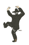 This cake was a bit of a challenge, since drawing people in motion is not exactly my forte. Luckily, I found an animated GIF online of a dancing Chasid (that’s Graphic Interchange Format for the uninitiated, although if you’ve never heard of it, I doubt that that explanation was illuminating in any way). It’s a simple animation made up of only a few frames. The question was, how could I break it down into individual frames and copy them?